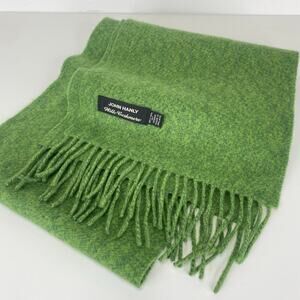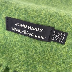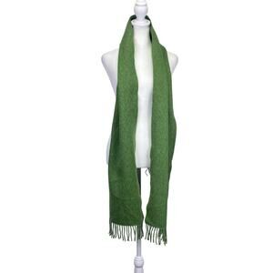 John Hanly Wool Cashmere Scarf Green Ireland Fringe Shawl Cozy Winter Classic