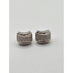 Elegant and versatile, these John Hardy earrings feature an intricate sterling silver design with 18K gold accents and pave detailing, exuding timeless sophistication.