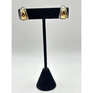 These earrings feature a sophisticated blend of 22K gold accents and sterling silver with a braided design, exuding a timeless, professional elegance.