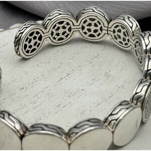 John Hardy 925 .25ctw Diamond Dot Palu Station Flex Cuff Bracelet42.09G/7in/13mm