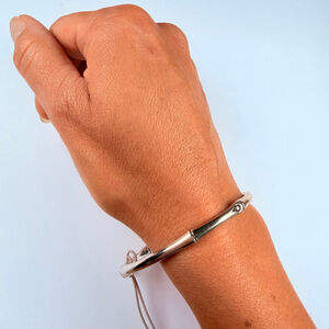 A delicate steering silver 925 bangle bracelet from John Hardys Bamboo Collection, the brand's most recognizable and important lines, blending exquisite craftsmanship with a deep commitment to environmental sustainability. This bracelet is directly inspired by the natural beauty, strength, and resilience of the bamboo plant, a central element in Balinese culture. Bamboo symbolizes strength, flexibility, and harmony. The bracelet is 4mm in width with amazing intricate design elements capturing the culm of the Bamboo tree. Brand New with Original tags