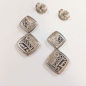 John Hardy Classic Chain Hammered Drop Earrings w. Black Sapphire + Black Spinel