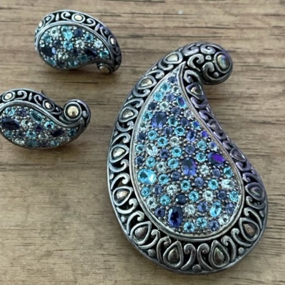John Hardy Blue Topaz & Amethyst earrings & brooch