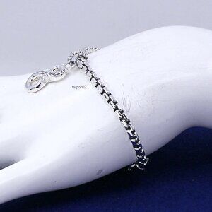 John Hardy JAI Symbols Love 3.7mm Box INFINITY Charm Sterling Silver Bracelet-XS