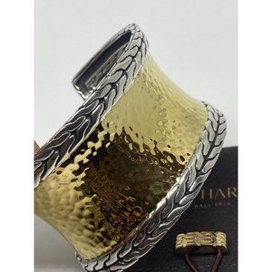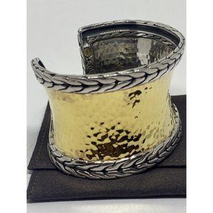 John Hardy Bracelet Cuff Palu 22k Gold Sterling Silver Classic Chain 1.5" Wide