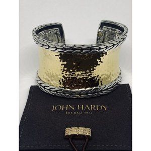 John Hardy Palu 1.5" Wide 22k Gold Sterling Silver Palu 6.5" Bracelet Cuff.