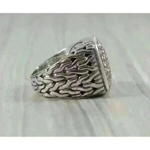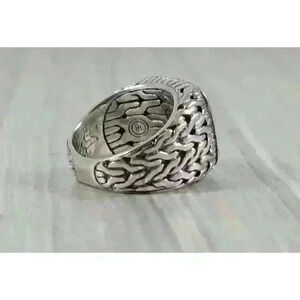 John Hardy Sterling Silver Classic Chain Signet Ring with Diamonds Size 8.75