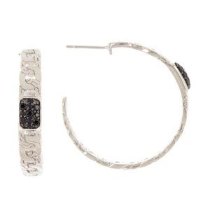 - Sterling silver hammered earrings with pave black sapphire stones