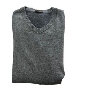 John Henric men's sweater M gray cotton v neck long sleeve pullover elbow patch
