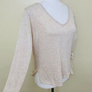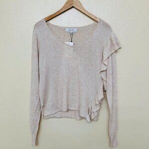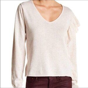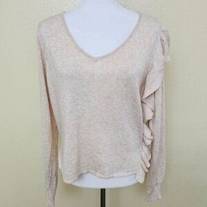 John + Jenn Anthro Womens Sweater Long Sleeves Ruffle XS Ivory Birch F767AR47NR