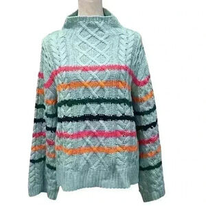 John + Jenn Blue/Green Cable-Knit Striped Turtleneck Sweater Size Medium