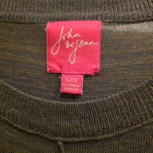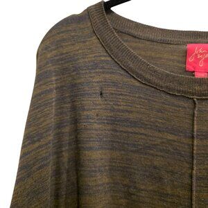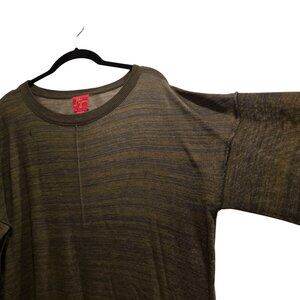 John & Jenn Boat Neck Olive Green Gray Thin Knit Step Hem Hi Low Sweater FLAW L
