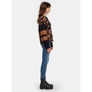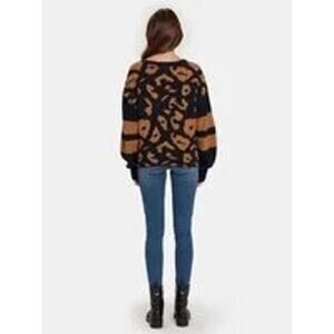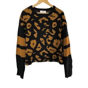 John & Jenn Finn Sweater Leopard Varsity Black Brown M