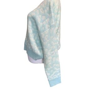 John + Jenn Leopard Print Knit Sweater Sz: XS, baby blue and white, great condition, smoke and pet free home, pit to pit 22", length 20"