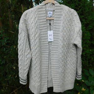 John + Jenn Polar Bear color oversized cableknit open cardigan sweater