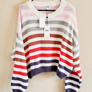 John & Jenn brand striped knit ribbed pullover sweater long sleeve, size medium M , large L and XL available