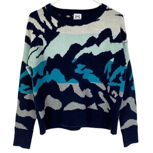 John & Jenn Sweater Deep Ocean Abstract Pullover Jumper Womens Size XS Crewneck