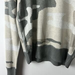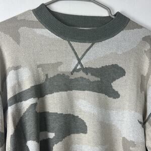 Gently Used John + Jenn Camo Crewneck Sweater. This is a women's medium. Super soft and comfortable. 45% acrylic, 30% modal, 25% viscose. Great camo pattern for fall and could be layered as well since it is lighter weight.