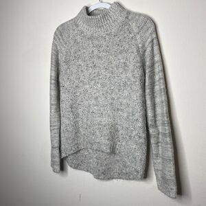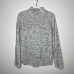 John + Jenn White & Gray Marled High-Low Long Sleeve Mock Turtle Neck Sweater SP