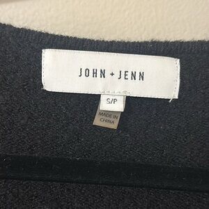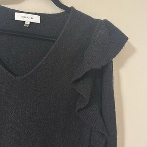John + Jenn Womens Black Textured Ruffle V-Neck Sweater Size Small Chic Comfy