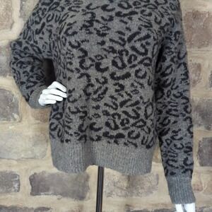 John + Jenn Women's Cozy Pullover Mock Neck Leopard Knit Sweater Top Size XS