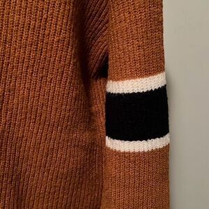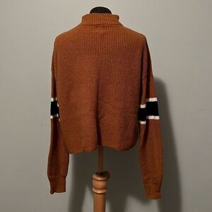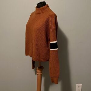 John + Jenn Women's Orange & Black Mock Neck Ribbed Knit Pullover Sweater