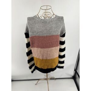 John + Jenn Womens Size Small Multi Color Striped Knit Crew Neck Sweater