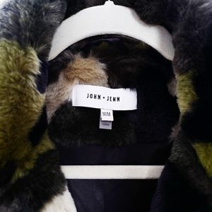 John & Jenn by Line Faux Fur Camp Coat. Size Medium. Worn once - Excellent condition. Color - Army camo.