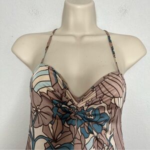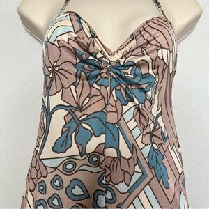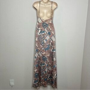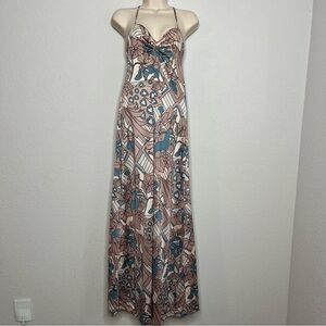 RARE John Kloss for Circo 1970s Maxi Dress Floral Retro Spaghetti Stap Ruched Bust