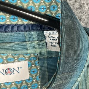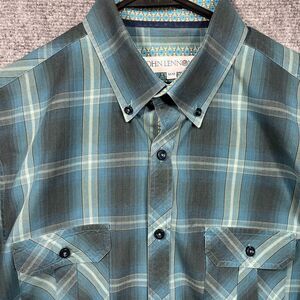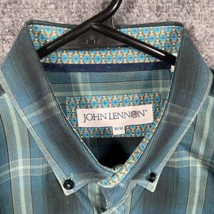 John Lennon Mens Button Up Shirt M Green Blue Plaid Psychedelic Retro UK Peace