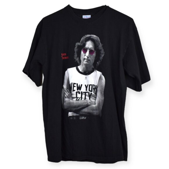 This John Lennon Tee by All Sport is an adult unisex vintage graphic shirt in size L. The black, 100% cotton tee features a unique "Dreamer" design, perfect for any Lennon fan.