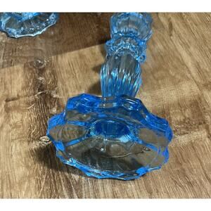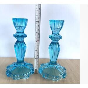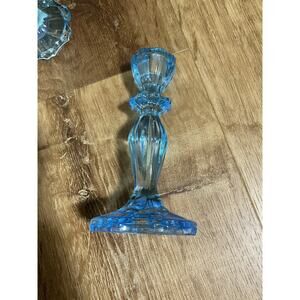 John Lewis Boho Blue Glass Candleholder Set of 2 Vintage Style Candlestick 15cm