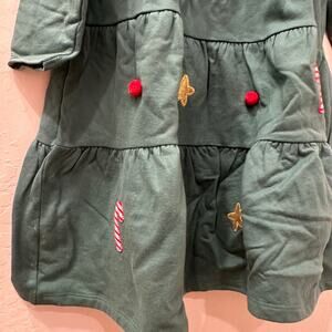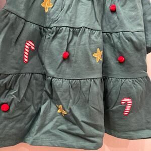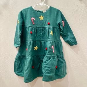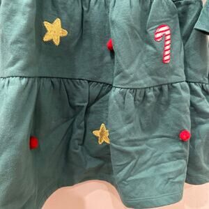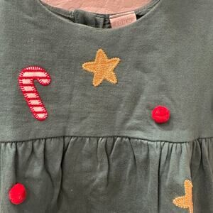 John Lewis dress size 3-4. Dark green with cute appliqué gold stars, candy canes, and Pom Poms. Super fun Christmas tree! Excellent condition.