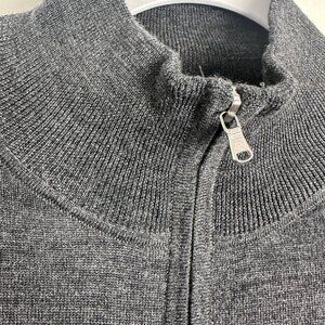 John Lewis Mens Merino Wool Crewneck Pullover 1/4 Zip Sweater Gray Large Golf
