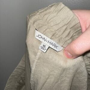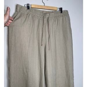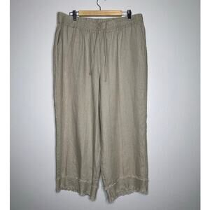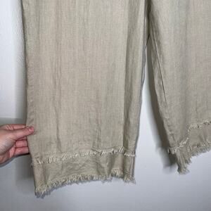 John Mark 100% Linen Wide Leg Cropped Pants Size XL Tan Natural Fringe Hem