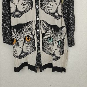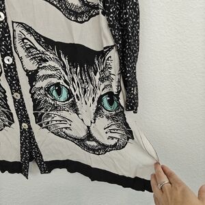 John Mark 3/4 Sleeves Button Up Cat Printed Blouse Size LG