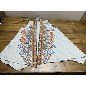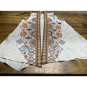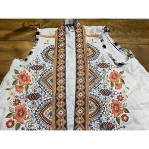 Add a touch of bohemian elegance to your wardrobe with this beautiful John Mark vest. The vest features intricate floral embroidery on a linen base, with a multicolor design that is sure to turn heads. The size small vest is perfect for any woman who wants to add a pop of color and style to their outfit.