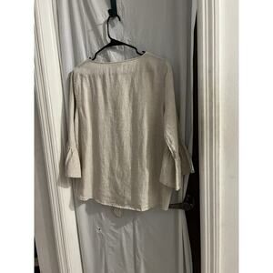 John Mark Beige Linen Tie Front Flare Sleeve Top Sz S