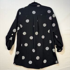 John Mark Black Button-Down Collared Shirt Dress White Polka Dots Size Small