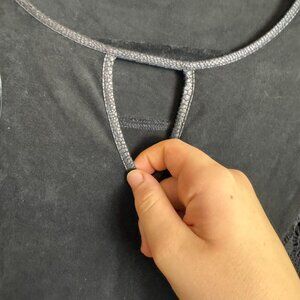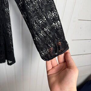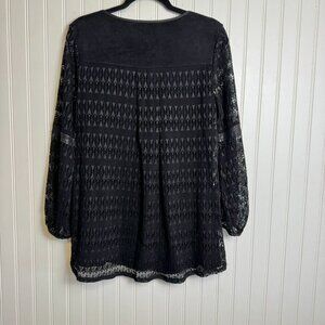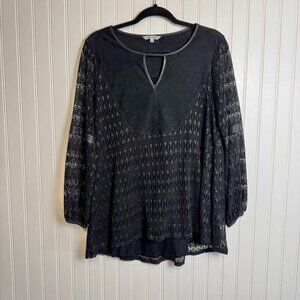 John Mark Black Long Sleeve Blouse Lace Keyhole O52