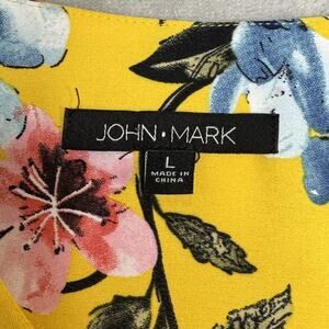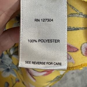 John Mark Blouse Womens Large Yellow Floral Ruffle Bell Sleeve Hi-Low V-Neck
