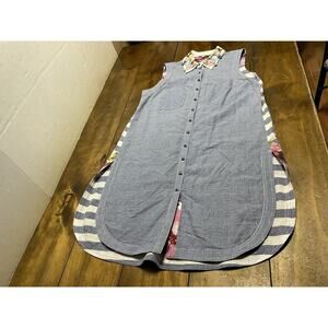 John Mark Blue Floral Trim Striped Chambray Shirt Tunic Dress Size Medium