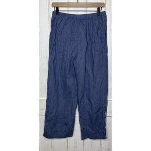John Mark Blue Wide Leg Linen Pants Coastal Lagenlook Beachy Nautical Vacation S