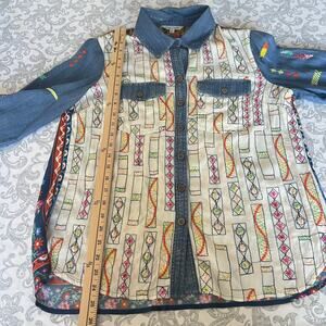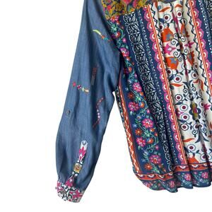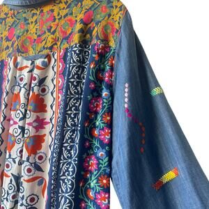 John Mark Bohemian Embroidered Long Sleeve Button Down Blouse Size S
