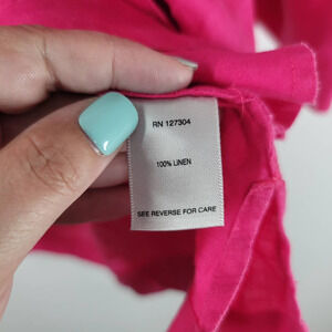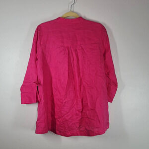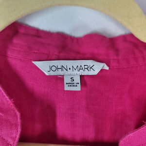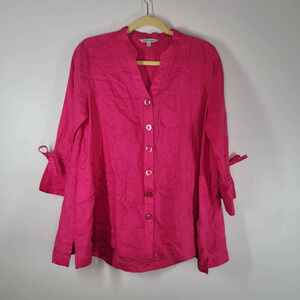 John Mark Button Down Shirt Size S Collared 3/4 Tie Sleeve Top Blouse Pink Linen