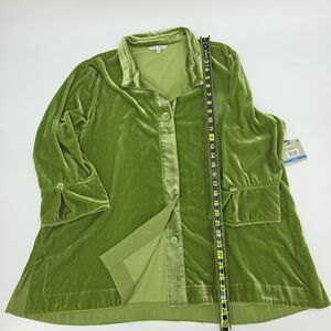 John Mark Button Up Down Shirt Women Size XL Green Velvet Wire Collar Holiday