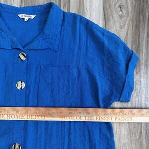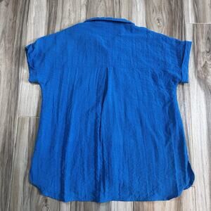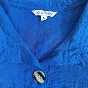 John Mark Camp Shirt Womens Large Oversized Relaxed Button Front Travel Blue