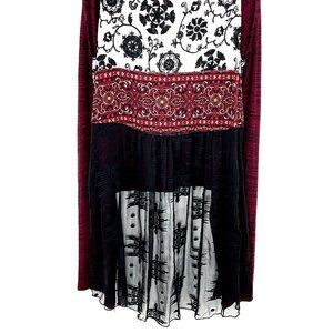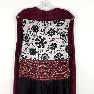 John Mark Cardigan Women L Multi-Color Patchwork Floral Draped Tunic Hippie BOHO
