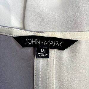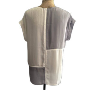 John Mark Color Block Blouse Boxy Fit Top White Gray Neutral Size Medium