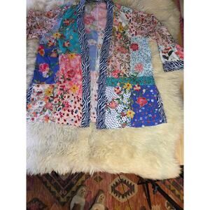 John Mark Floral Kimono Patchwork & Embroidered Size XL Viscose
